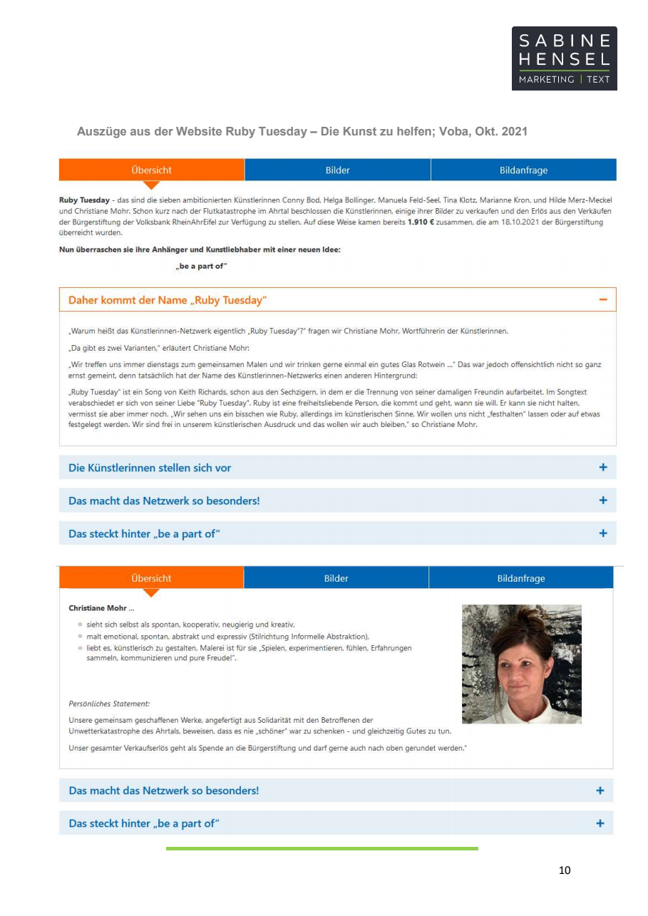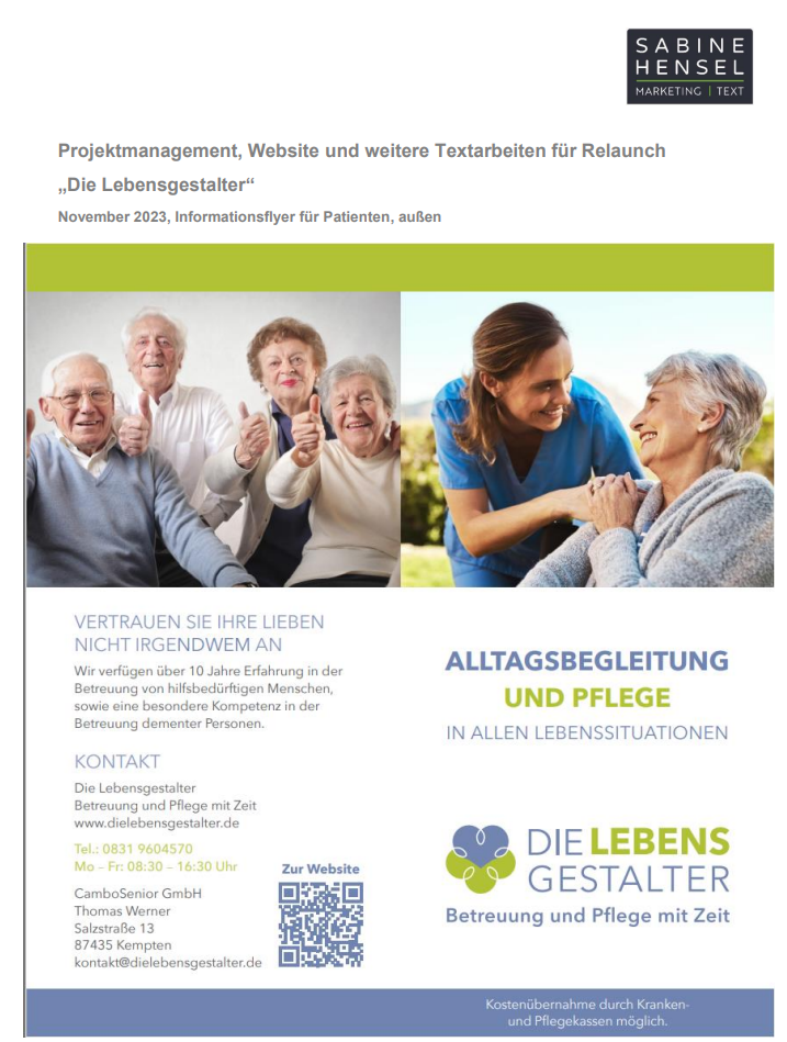 Fordern Sie die Textproben und/oder den Lebenslauf an unter sabine@henselmarketing.de.